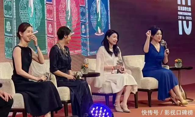 郭晶晶与章泽天分别坐在台上讲话,两位都是出众的人物。因为她们都有丰富的眼界与视野,所以都表现的很淡定。